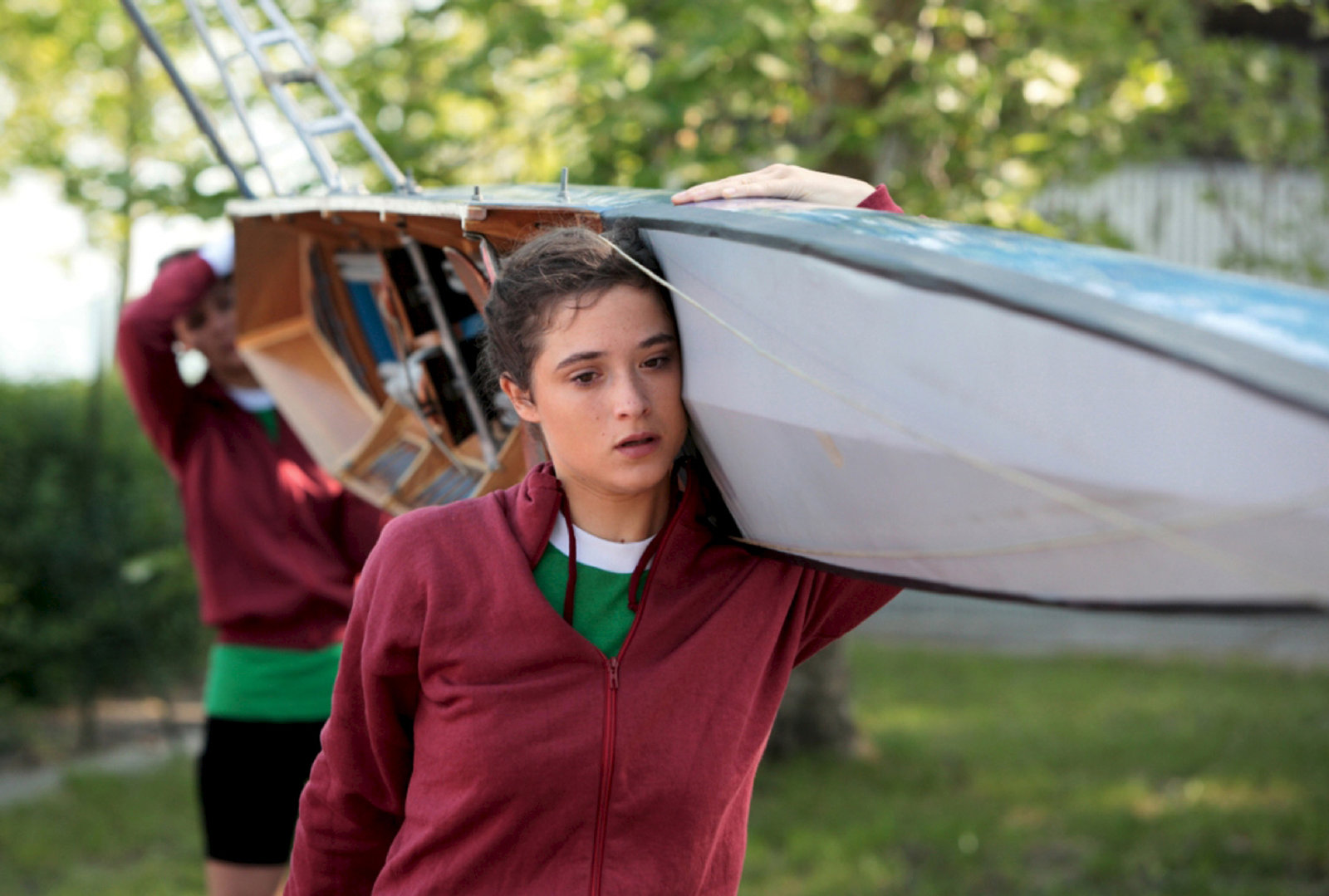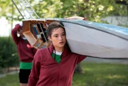 Die Zwillinge Doreen (Friederike Becht, vorne) und Isa (Luise Heyer) mit ihrem TrainingsbootBild: © ZDF und Steffen Junghans
