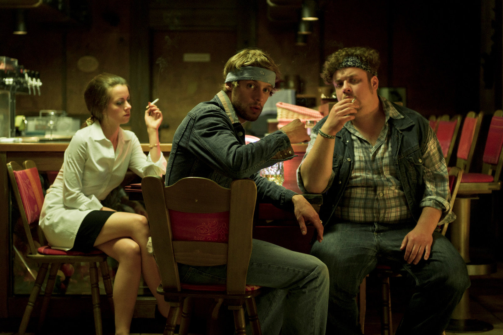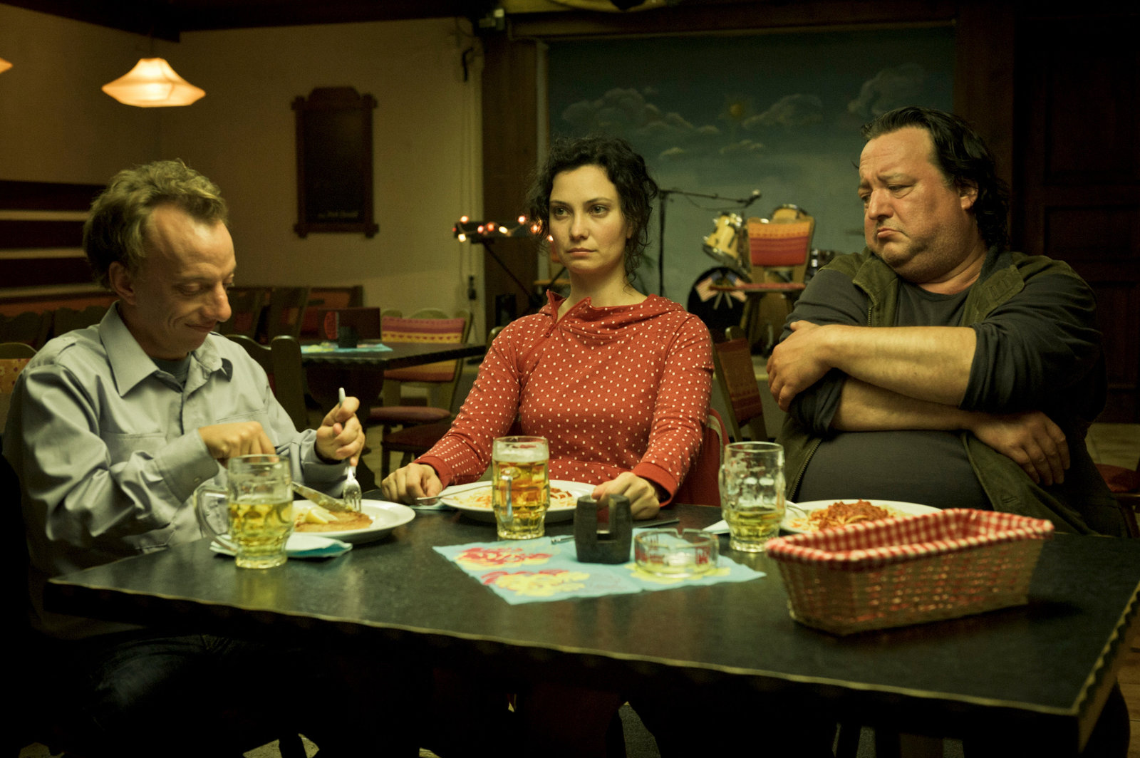 (v.l.n.r.) Kellnerin im Restaurant (Alice Dwyer), Gast im Restaurant 1 (Christoph Humnig) und Gast im Restaurant 2 (Till Butterbach)Bild: © ZDF und Stefan Hoederath