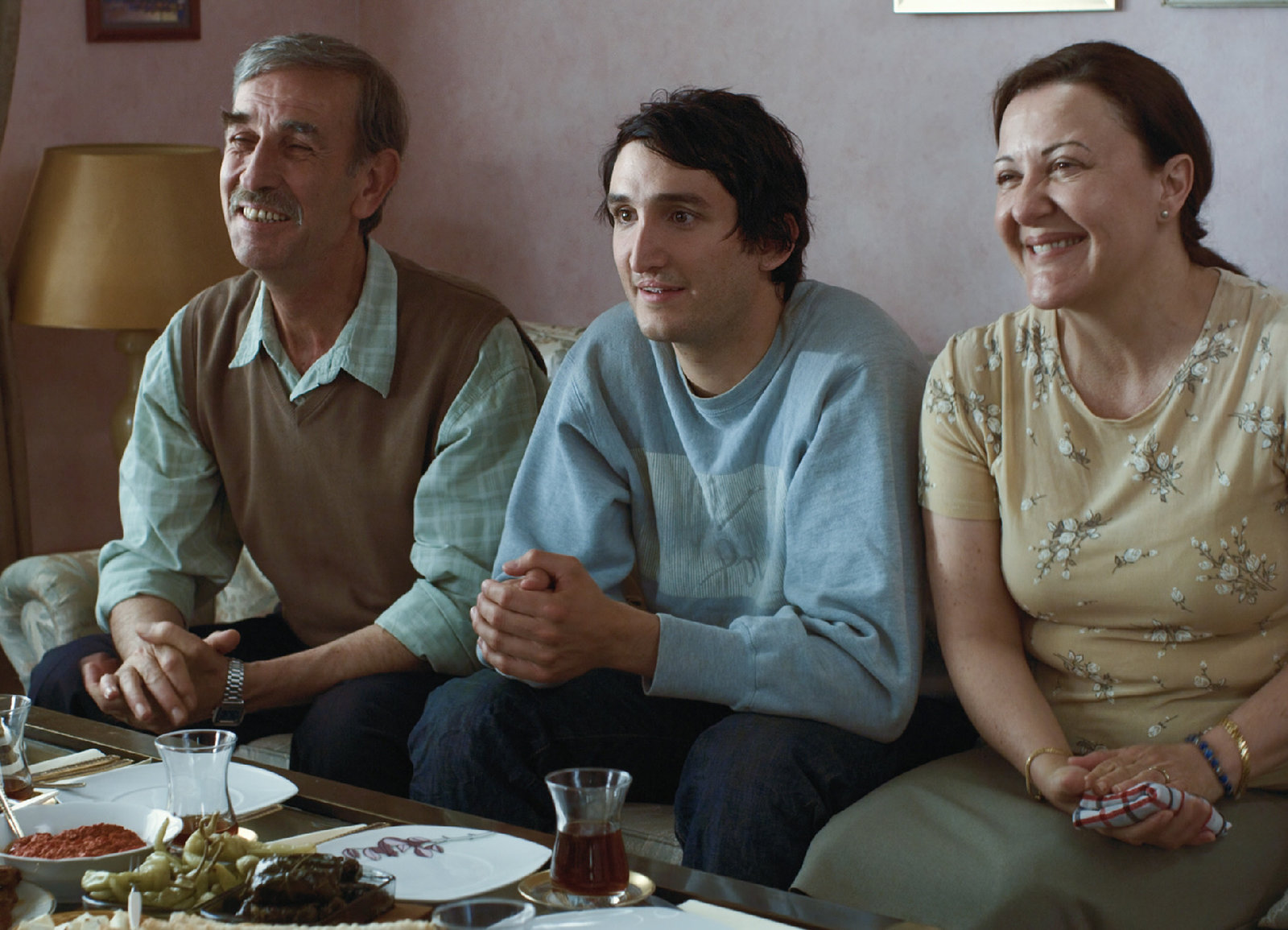 Luk (René Vaziri) und seine Eltern (Sinan Bengier,li., Sumru Yavrucuk, re.) hören sich die Ratschläge des Lotto-Mitarbeiters an.Bild: © ZDF und Christian Kux