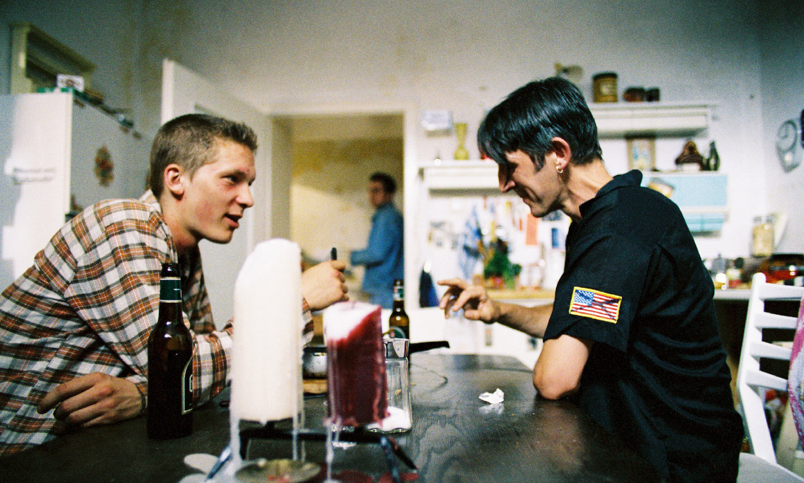 Guido (Jakob Matschenz) und Rudi (Andreas Schmidt) diskutieren in der WG-KücheBild: © ZDF und Tom Trabow