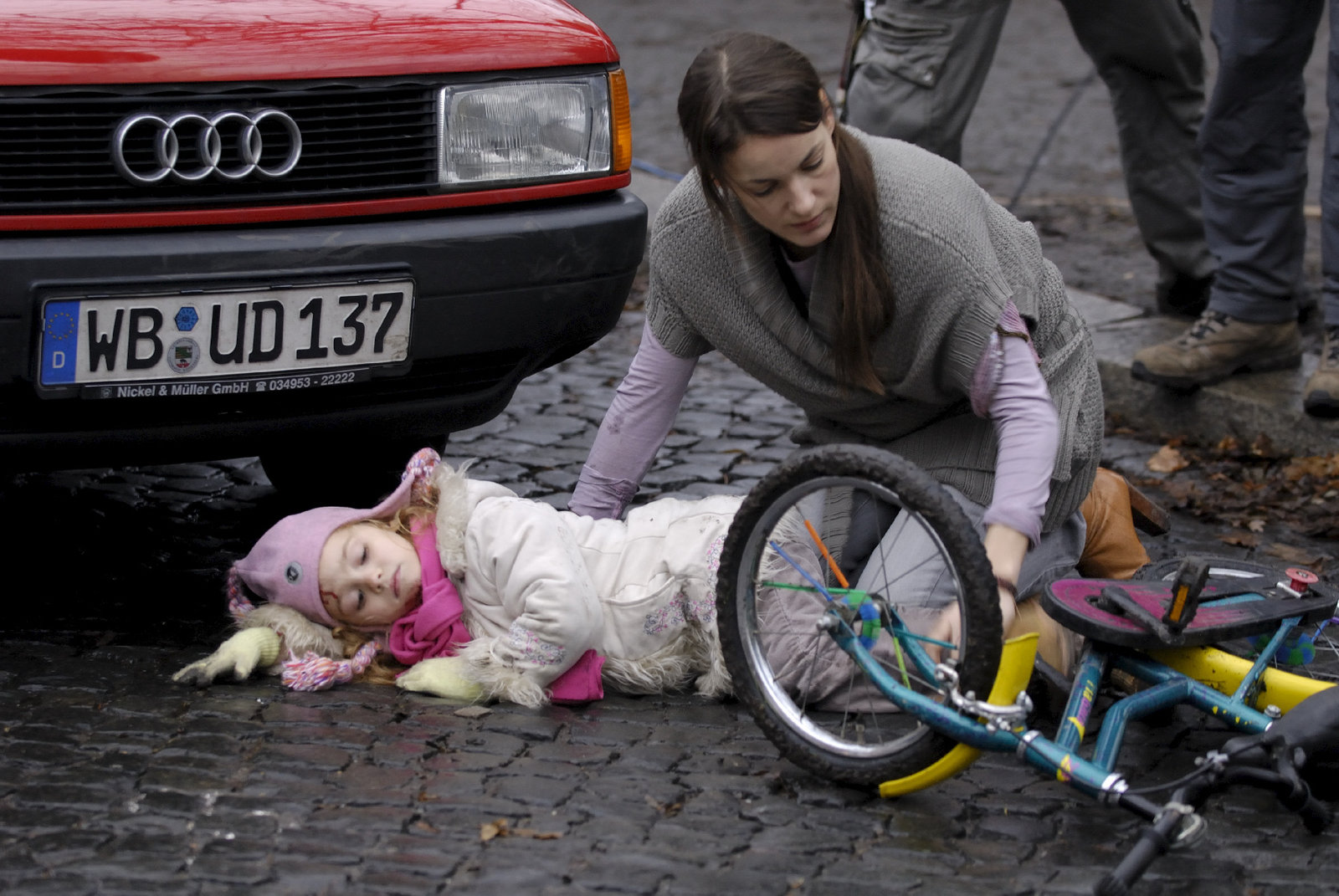 Dinah (Nicolette Krebitz) ist außer sich, als ihre kleine Tochter (Elisa Richter) von einem Auto angefahren wird. Wieso hat ihr Mann denn nicht auf sie aufgepasst? Er stand doch daneben!Bild: © ZDF und Matthias Melster