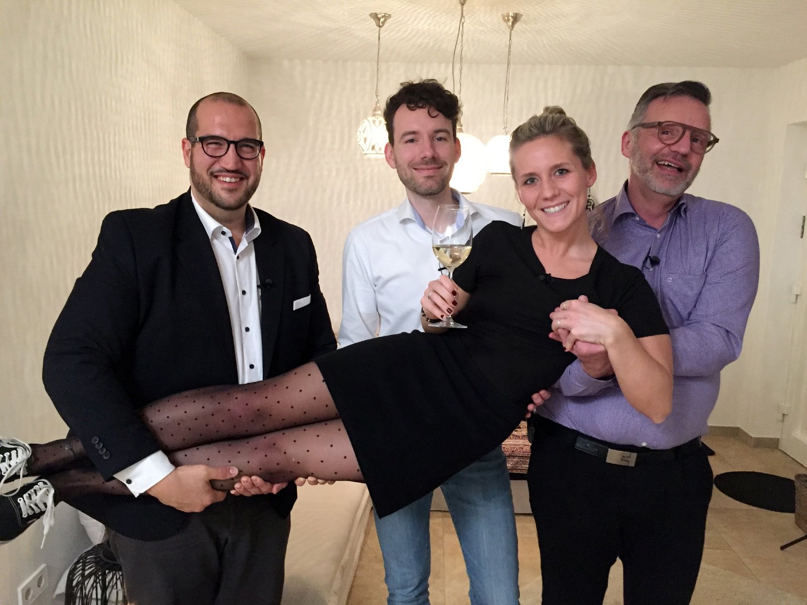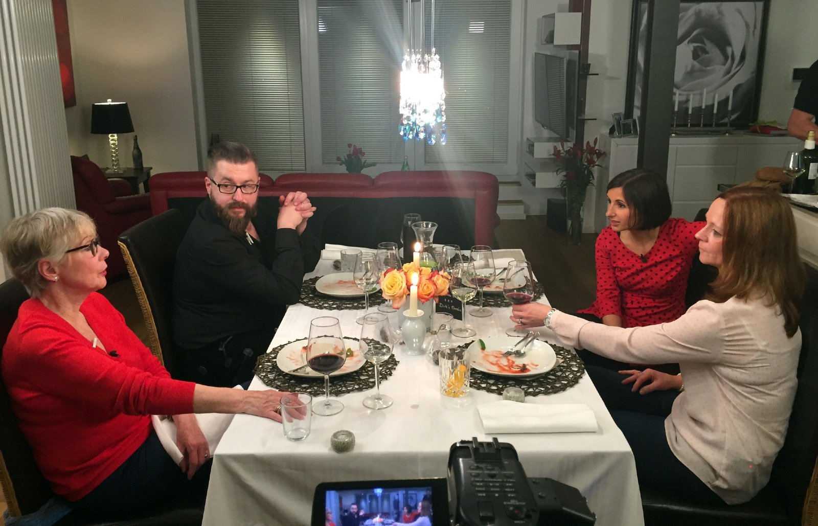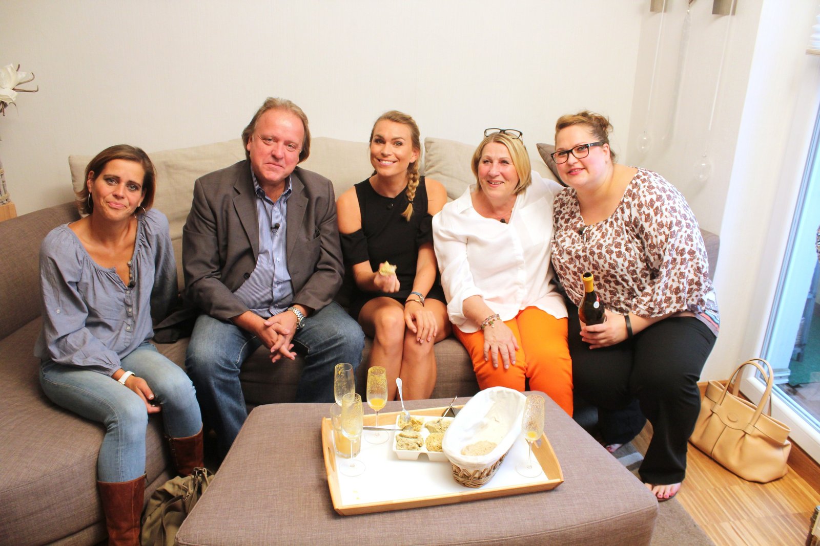 Tag 1: Johanna, KrefeldV.l.: Gastgeberin Joanna, Lea, Alain, Thomas, MartinBild: © VOX/ITV Studios