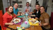 Tag 3: Daniel, 40 JahreV.l.: Frank, Ulli, Andrea, Sibel, Gastgeber Daniel (vorne)Bild: © MG RTL D / ITV Studios