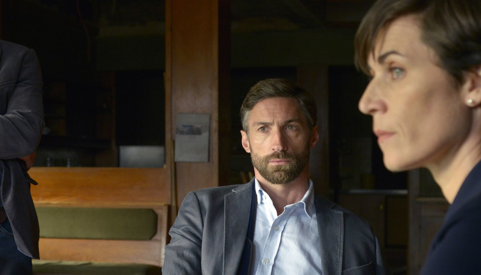Teil 2Das BKA-Team von Ursula Thern sind mit Simon Dreher (Benjamin Sadler) in eine Berghütte gefahren und konfrontieren ihn dort mit der Aussage einer anderen Belastungszeugin.Bild: © NDR/Degeto/Christiane Pausch