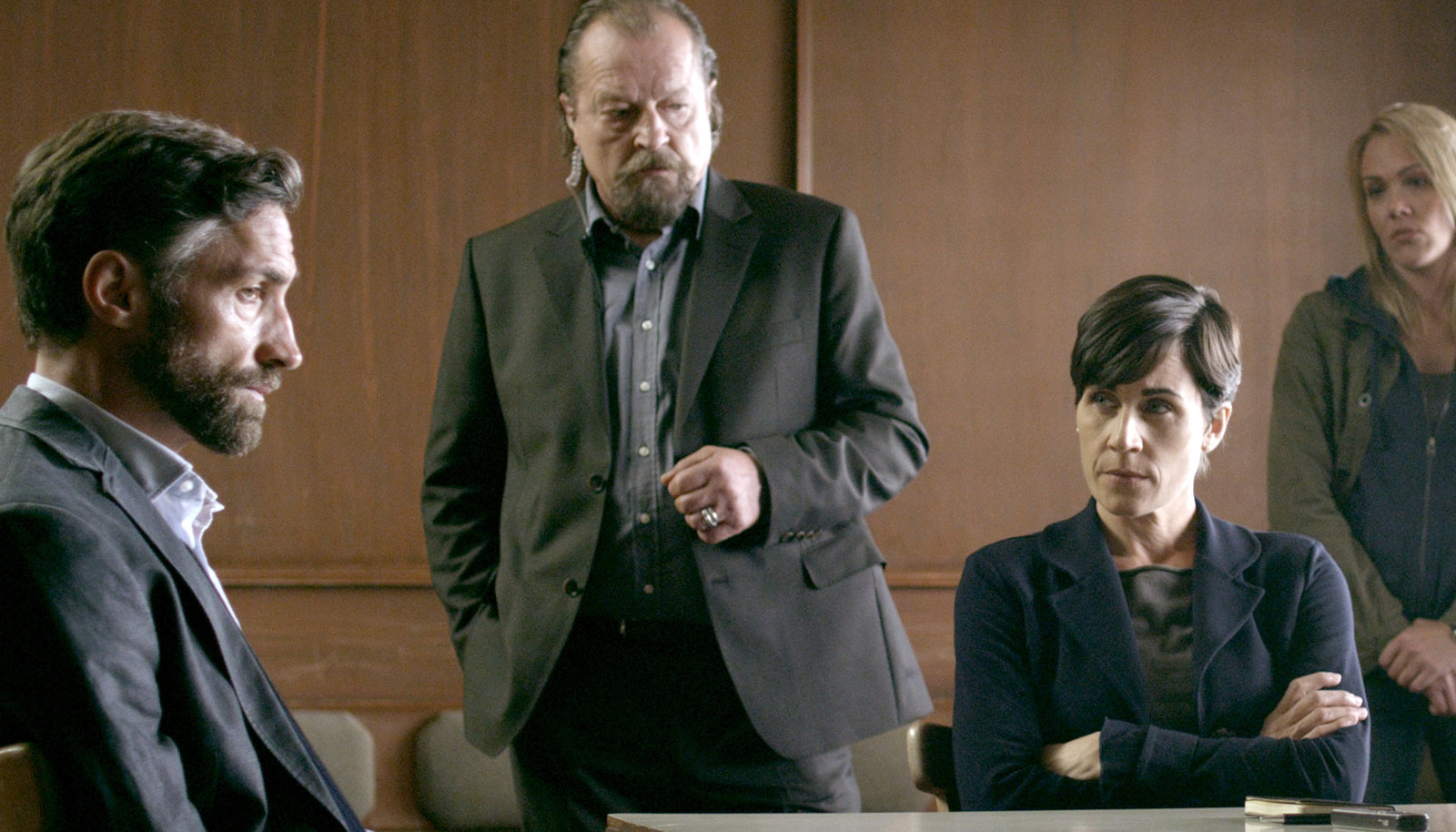 Teil 1Die LKA-Beamtin Nadja Lenz (Alwara Höfels) bei der Besprechung mit ihrer Vorgesetzten Ursula Thern und ihrem Kollegen Mario Kreutzer.Bild: © ARD Degeto/Christiane Pausch