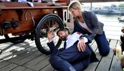 Teil 1Der Bankangestellte Simon Dreher (Benjamin Sadler) wird in seiner Mittagspause angeschossen. Es eilt ihm eine Zivilbeamtin (Dani Stein) zur Hilfe.Bild: © MDR/Degeto/Christiane Pausch