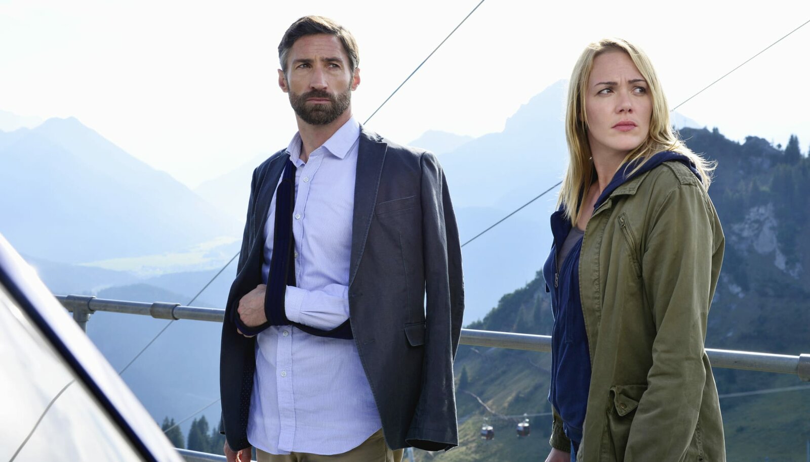 Teil 1Die LKA-Ermittlerin Ursula Thern (Nina Kunzendorf) und ihr Team sind mit Simon Dreher (Benjamin Sadler) in einer Berghütte, wo ein Treffen mit einer weiteren Belastungszeugin arrangiert ist.Bild: © ARD Degeto/Christiane Pausch