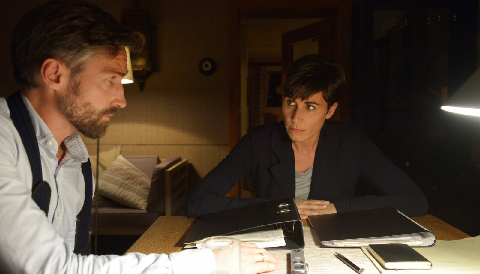 Teil 1Die LKA-Beamtin Ursula Thern (Nina Kunzendorf) beginnt mit der Befragung von Simon Dreher (Benjamin Sadler).Bild: © SWR/ARD Degeto/Christiane Pausch