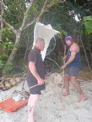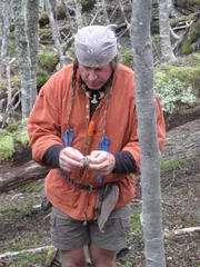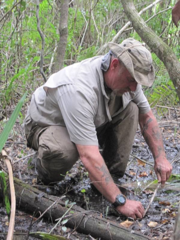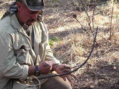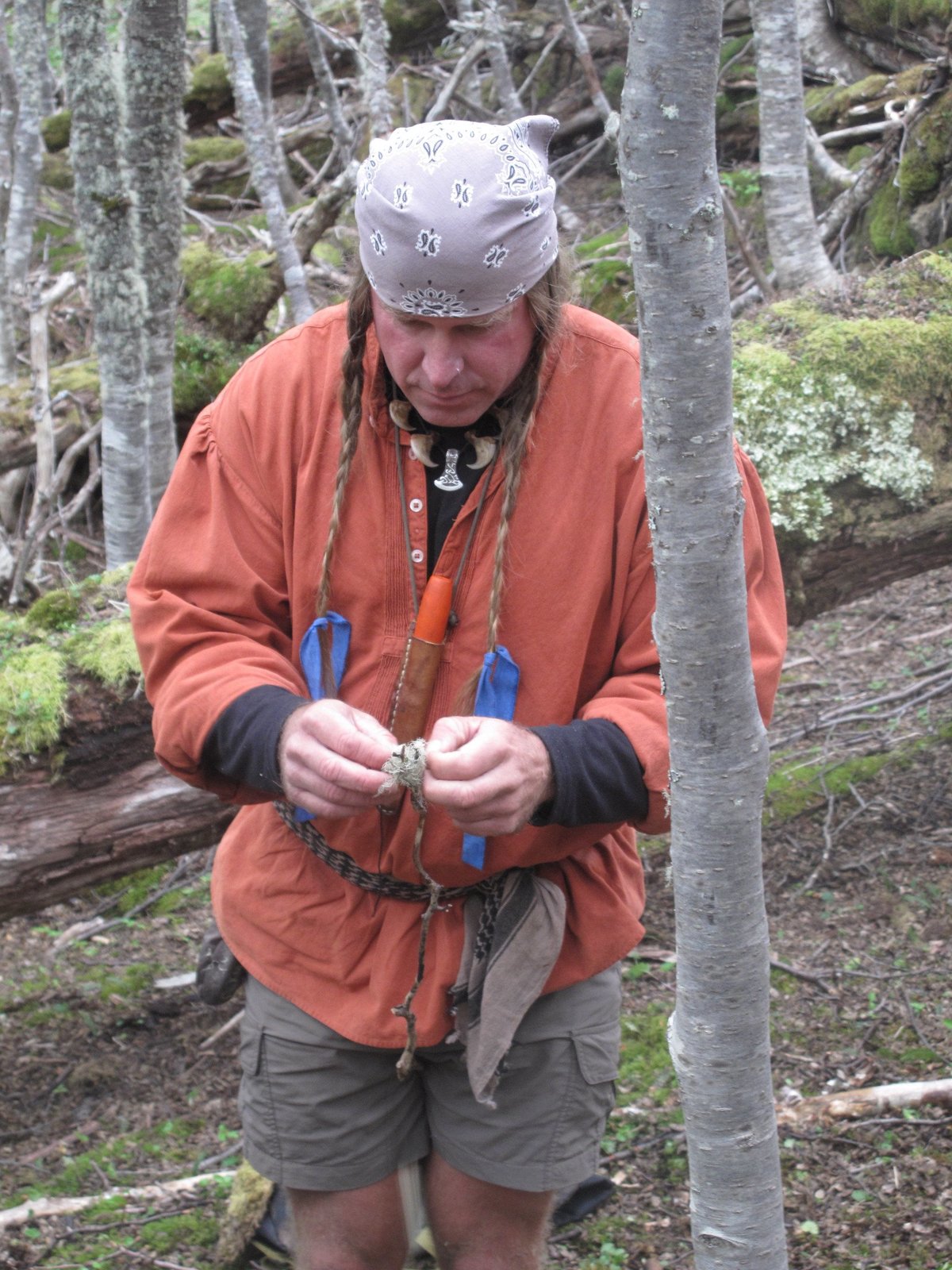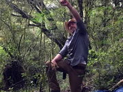 Der Wald der SchlangenJeff Zausch working on snare, showing cord tied around his arm.Bild: © DMAX