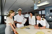 New York, Savannah und Salvador de BahiaDas Traumschiff - New York, Savannah und Salvador de Bahia Heide Keller als Chefhostess Beatrice, Gerit Kling als Juliane Wiedemann und Francis Fulton-Smith als Paul Wiedemann SRF/ZDF/Dirk BartlingBild: © SRF1
