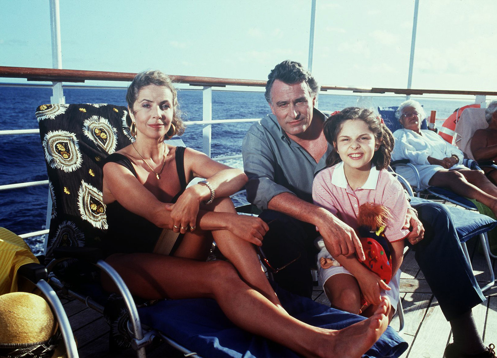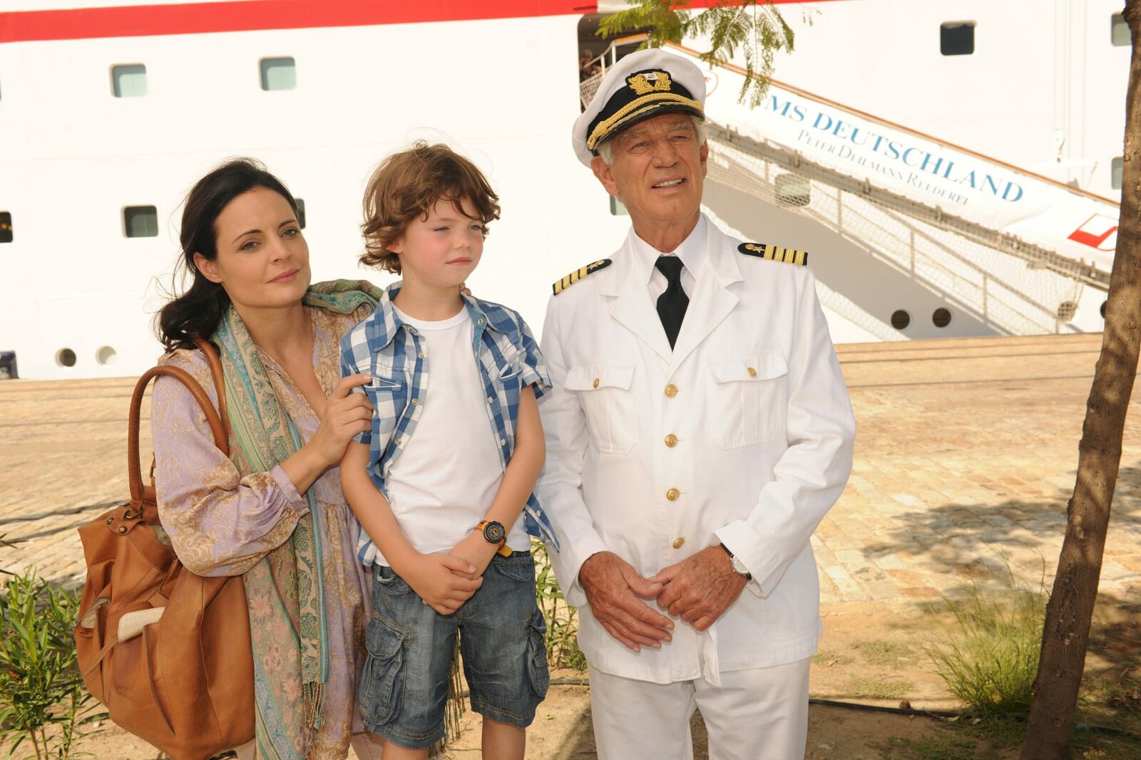 New York, Savannah und Salvador de BahiaGemeinsam mit ihrem Sohn (Malon Stahlhuth, M.) und Kapitän Paulsen (Siegfried Rauch, r.) wartet Marion (Elisabeth Lanz, l.) auf Benjamins Vater.Bild: © Romance TV / New York, Savannah, Salvador de Bahia /