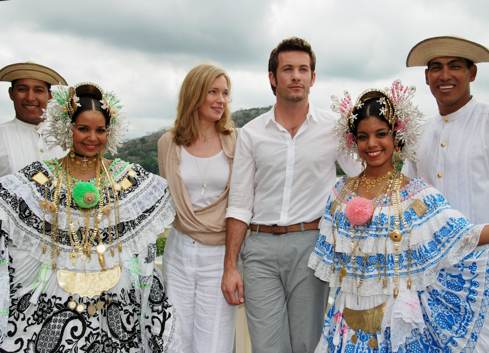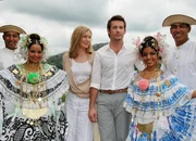 PanamaFarbenprächtiger Landausflug: Katja Weitzenböck als Viola Renner (3.v.l.), Jan Hartmann als Daniel (3.v.r.)Bild: © SRF/ZDF/Dirk Bartling