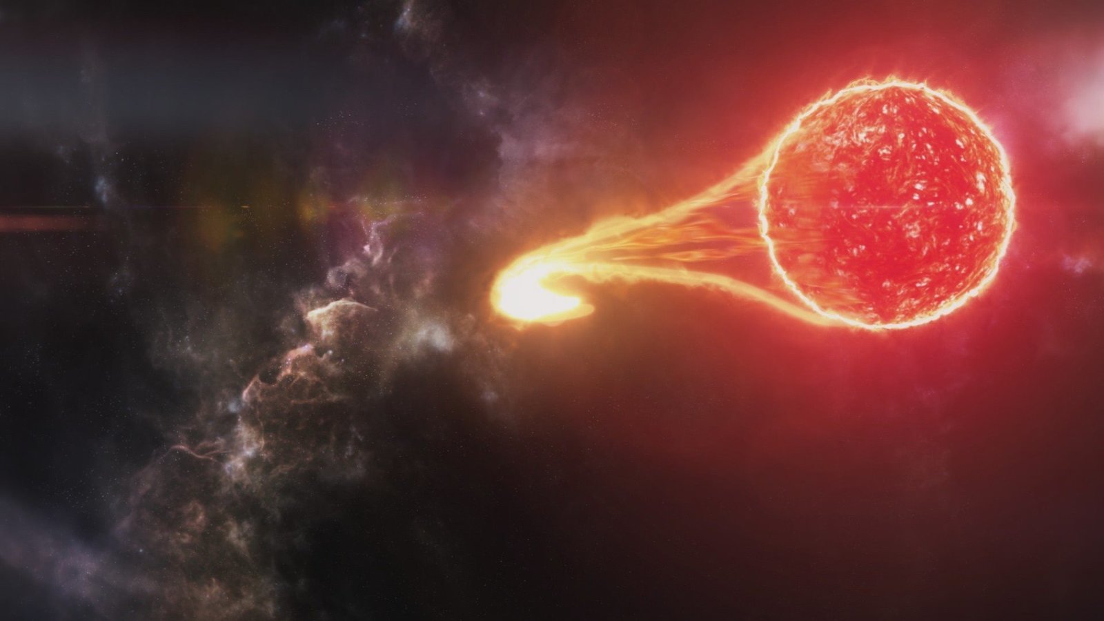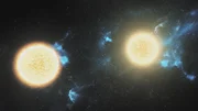 DoppelsternsystemeEin aktiver Prozesse in einem aus Weißem Zwerg und Rotem Riesen gebildeten Doppelsternsystem.Bild: © TVNOW / Pioneer Production