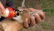 Folge 1rbb Fernsehen DAS WAISENHAUS FÜR WILDE TIERE FOLGE 1, "Abenteuer Afrika", am Montag (01.10.12) um 17:05 Uhr. Ein Karakalbaby wird mit dem Milchfläschchen gefüttert.Bild: © rbb/SWR