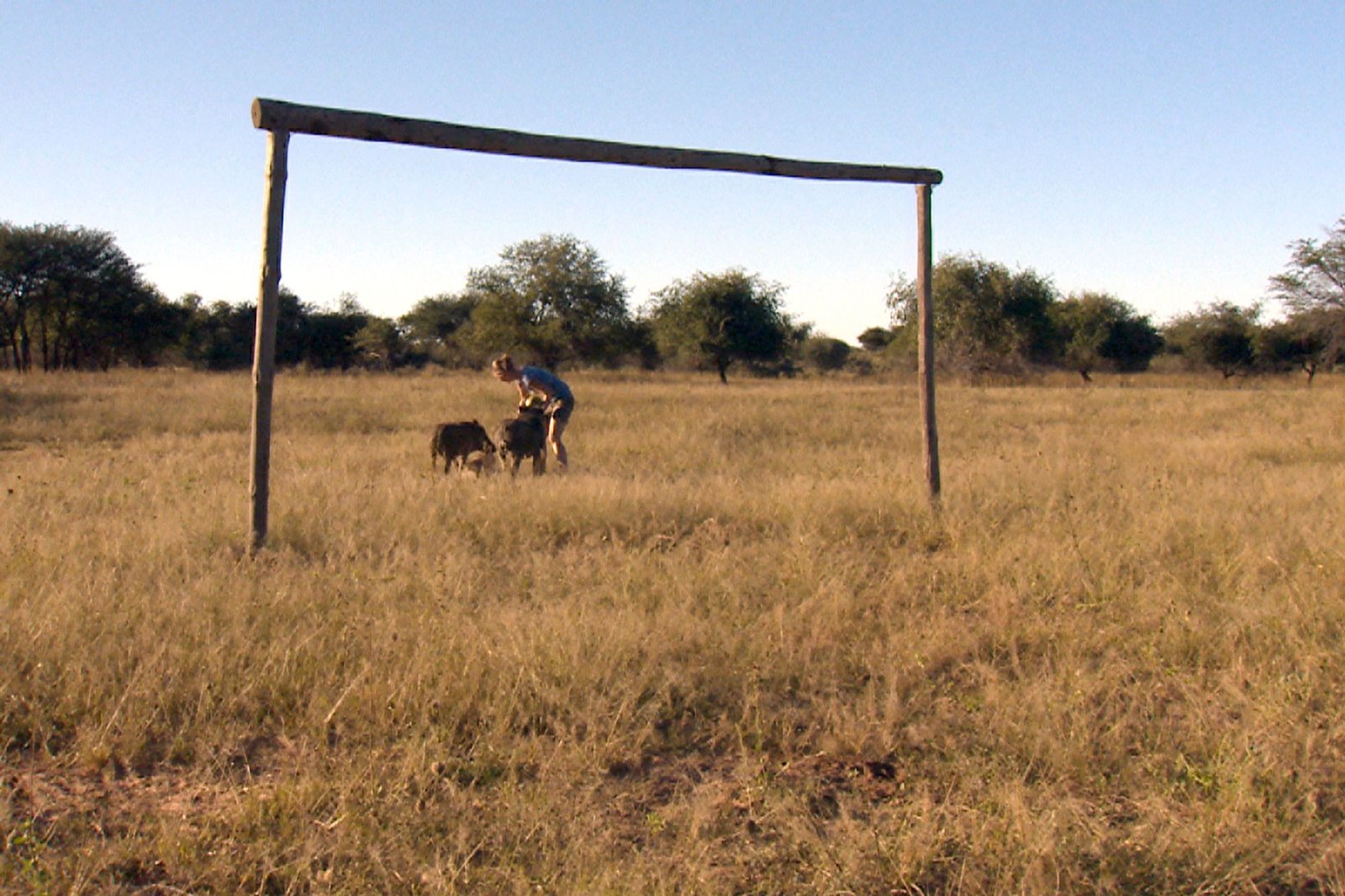 Folge 43Volontärin Davina spielt eine Runde Fußball mit Ham and Bacon.Bild: © SWR/Michael Lange