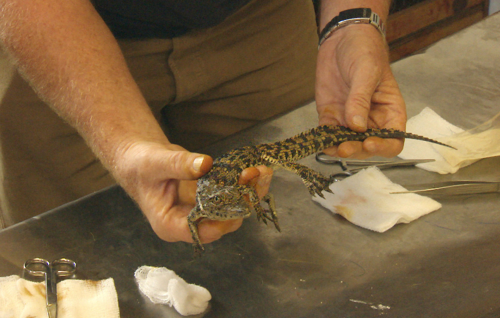 Folge 71Ein krankes Tier muss operiert werden: ein kleines Nilkrokodil.Bild: © BR/SWR / Francois Botha