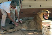 Folge 6ARD/SWR DAS WAISENHAUS FÜR WILDE TIERE FOLGE 6, "Abenteuer Afrika", SWR Dokuserie mit 40 Folgen, deren Schauplatz die Tierrettungsstation "Harnas" am Rand der afrikanischen Kalahari-Wüste ist, am Montag (02.01.12) um 16:10 Uhr im ERSTEN. Diese Löwendame hat eine Rückenverletzung und Annika macht mit ihr Großkatzen - Gymnastik!Bild: © SWR/Harald Pokieser