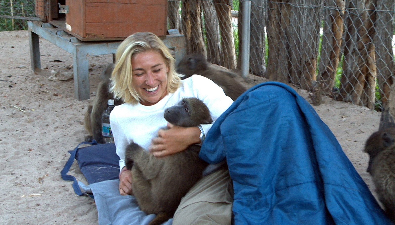 Folge 2ARD/SWR DAS WAISENHAUS FÜR WILDE TIERE FOLGE 2, "Abenteuer Afrika", 40-teilige Dokuserie des SWR, deren Schauplatz die Tierrettungsstation "Harnas" am Rand der afrikanischen Kalahari-Wüste ist, am Mittwoch (21.12.11) um 16:10 Uhr im ERSTEN. Annabel verbringt eine spannende Nacht im Haus der jungen Paviane. Vor dem Schlafen wird noch gekuschelt.Bild: © SWR/Harald Pokieser