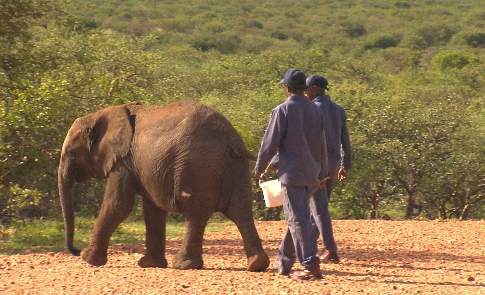 Folge 96ARD/SWR DAS WAISENHAUS FÜR WILDE TIERE FOLGE 96, "Abenteuer Afrika", am Dienstag (17.03.15) um 16:10 Uhr im ERSTEN. Elefantenmädchen Stouter macht einem Spaziergang durch den Busch.Bild: © SWR/Harald Mittermüller