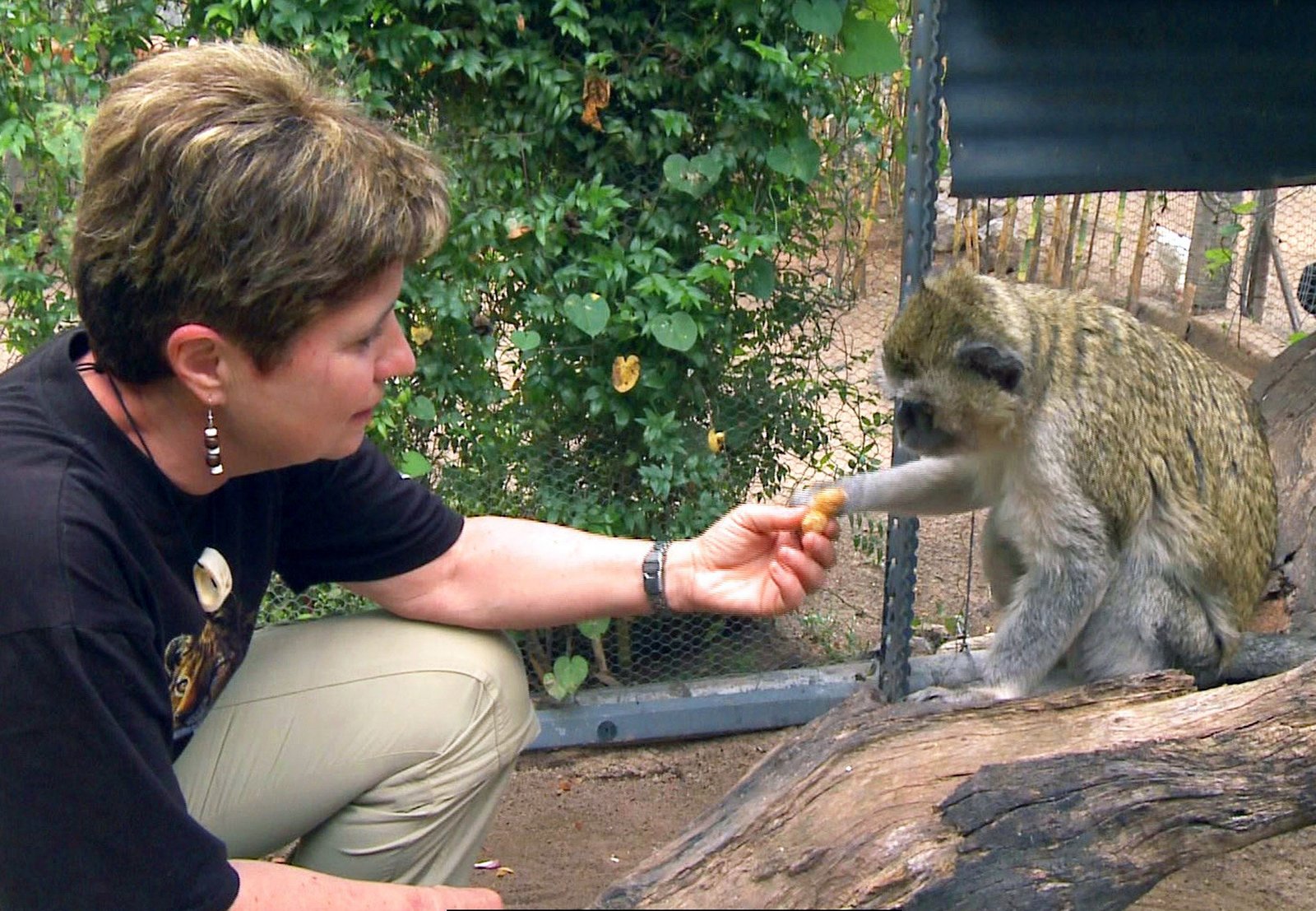 Folge 13Die blinde Meerkatze Audrey freut sich über die mitgebrachten Erdnüsse!Bild: © ORF 1
