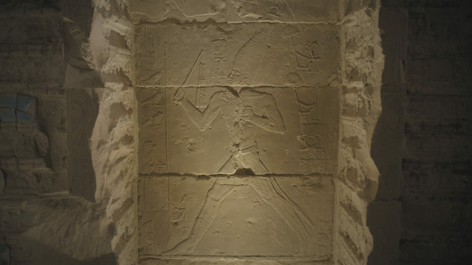 Der erste MonumentalbauEin Flachrelief aus der Djoser-Pyramide zeigt den Pharao bei einem Ritual-Lauf.Bild: © ZDF und Pernel Media - 2020./Pernel Media - 2020
