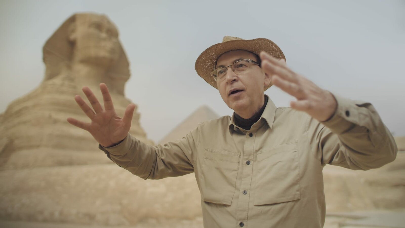 Das Rätsel der SphinxDer Ägyptologe Dr. Vassil Dobrev vor der großen Sphinx von Gizeh.Bild: © ZDF und Pernel Media./Pernel Media