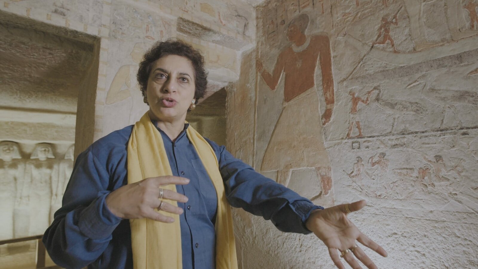 Das Rätsel der SphinxDie Ägyptologin Prof. Salima Ikram in einem königlichen Grab in der Nekropole von Gizeh.Bild: © ZDF und Pernel Media./Pernel Media