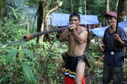 Schlangen, Schweine, SchönheitswahnLubun Petrus (l.) mit dem Blasrohr auf der Jagd im UrwaldBild: © ZDF und SRF