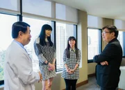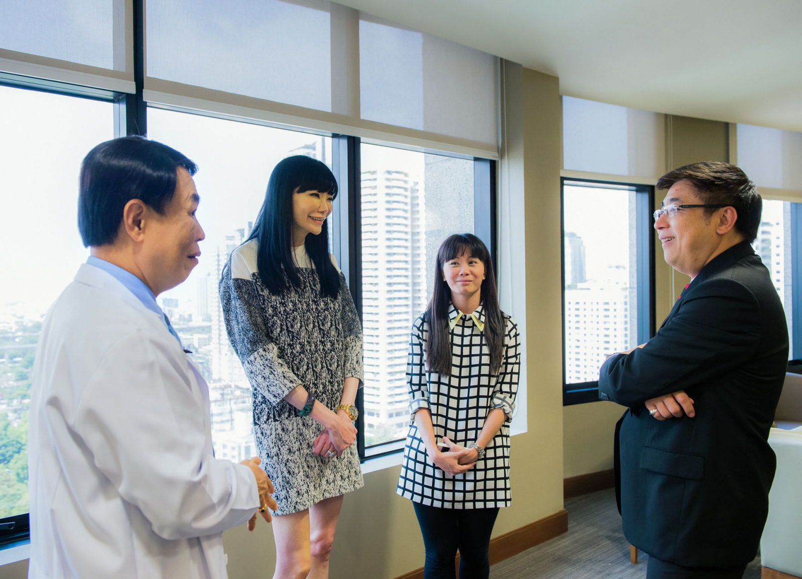 Löwen, Haie und ein StaatspräsidentGeorgia Lee (2.v.l.) im Gespräch mit leitenden Ärzten der Bumrungrad Klinik in BangkokBild: © ZDF und SRF/Arron Teo