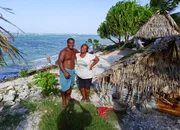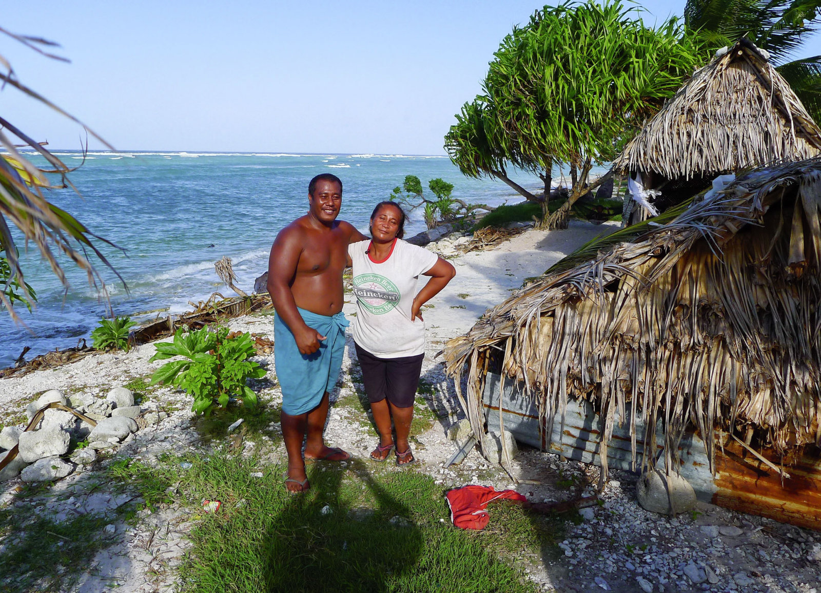 Party, Untergang und SeelöwenIotobina Terieta Tekatawa und ihr Mann Kaata Buentetake vor ihrer Hütte direkt am Meer, im Südsee-Staat Kiribati. Der Anstieg des Meeresspiegels aufgrund des weltweiten Klimawandels wird für die beiden zunehmend zur Gefahr.Bild: © ZDF und SRF