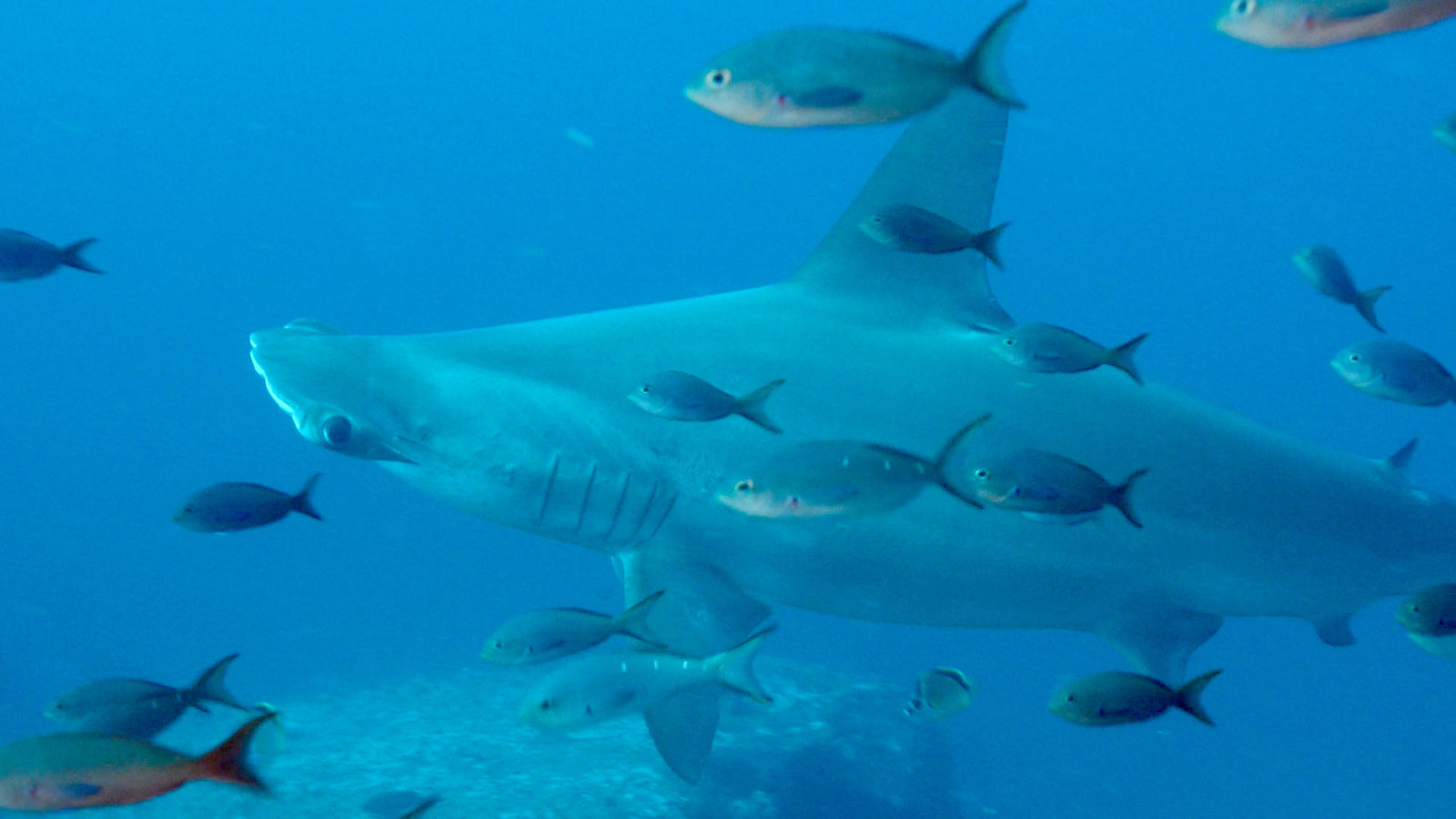 Löwen, Haie und ein StaatspräsidentIm riesigen marinen Schutzgebiet von Galapagos gedeihen Hammerhaie. Ihren Namen verdanken sie dem hammerartigen Kopf an dessen äusseren Enden sich die Augen befinden.Bild: © 3sat