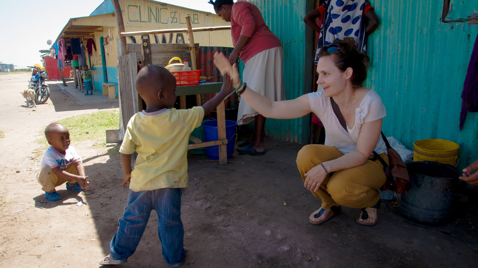 Hoffnung, Trauer und große ZieleSchweizerisch-Kenianisches High Five in einer Drehpause in Sekenani.Bild: © ORF III