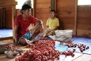 Hoffnung, Trauer und große ZieleDie Regierung von Sarawak hat die Lizenz zum Abholzen einer der letzten Urwälder der Penan bereits vergeben. Das Fällen undAbtransportieren der Urwaldriesen ist angelaufen.Bild: © ZDF und SRF