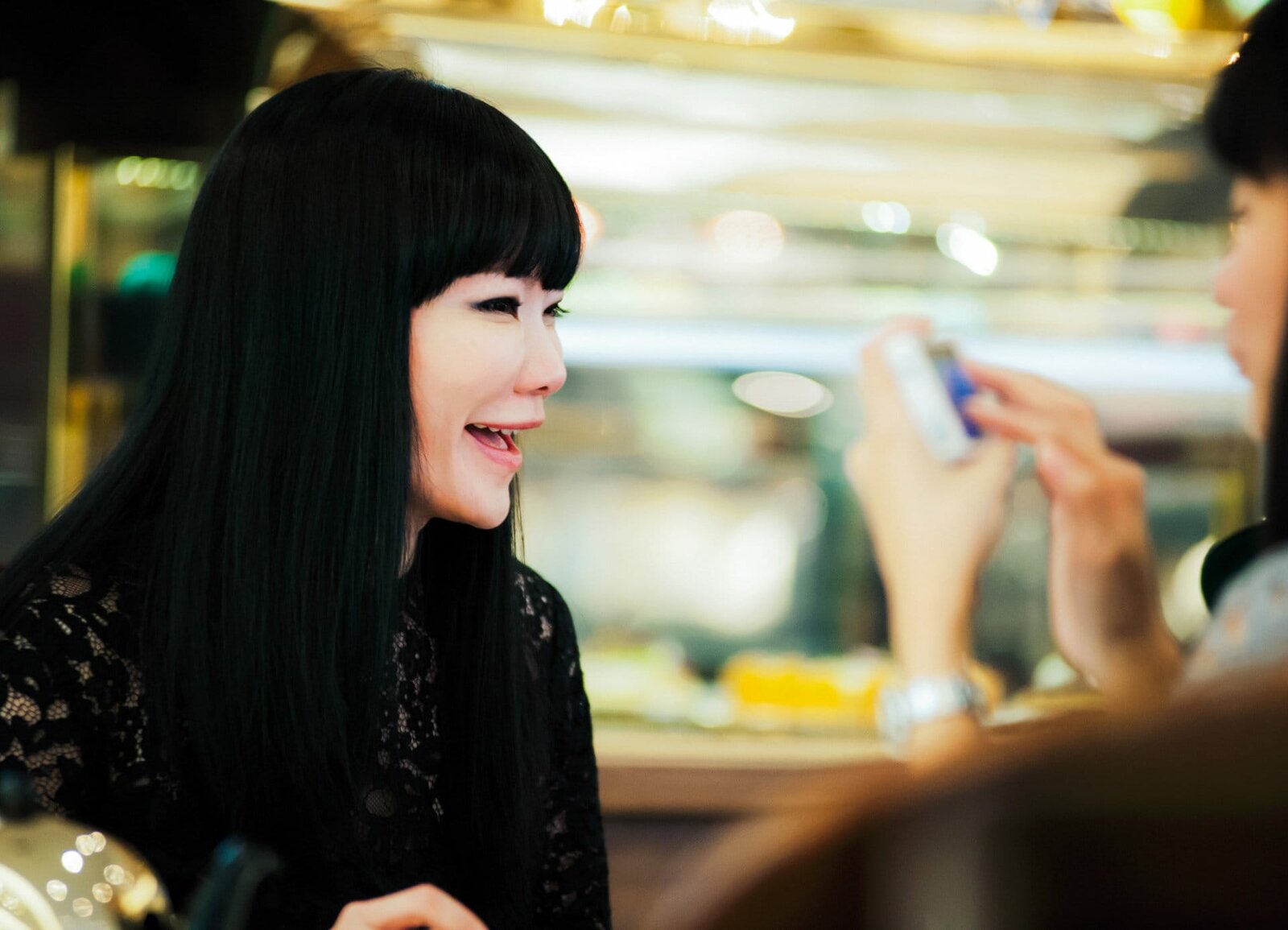 Gott, Botox und UrtiereGeorgia Lee in Singapur: bwohl hart arbeitend und sehr fokussiert, ein Spass mit den Mitarbeitern muss für sie immer drin liegen. (Copyright SRF)Bild: © 3sat