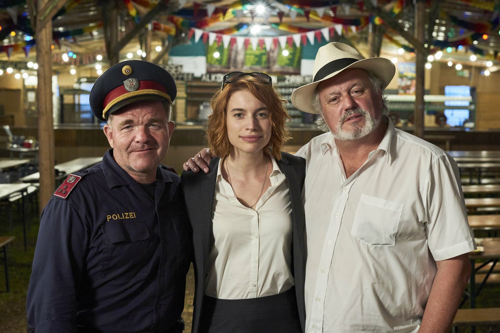Letzter KirtagL-R: Friedrich Kahlß (Gerhard Ernst), Renate Kohlross (Lisa-Lena Tritscher), Franz Gasperlmaier (Cornelius Obonya)Bild: © ServusTV
