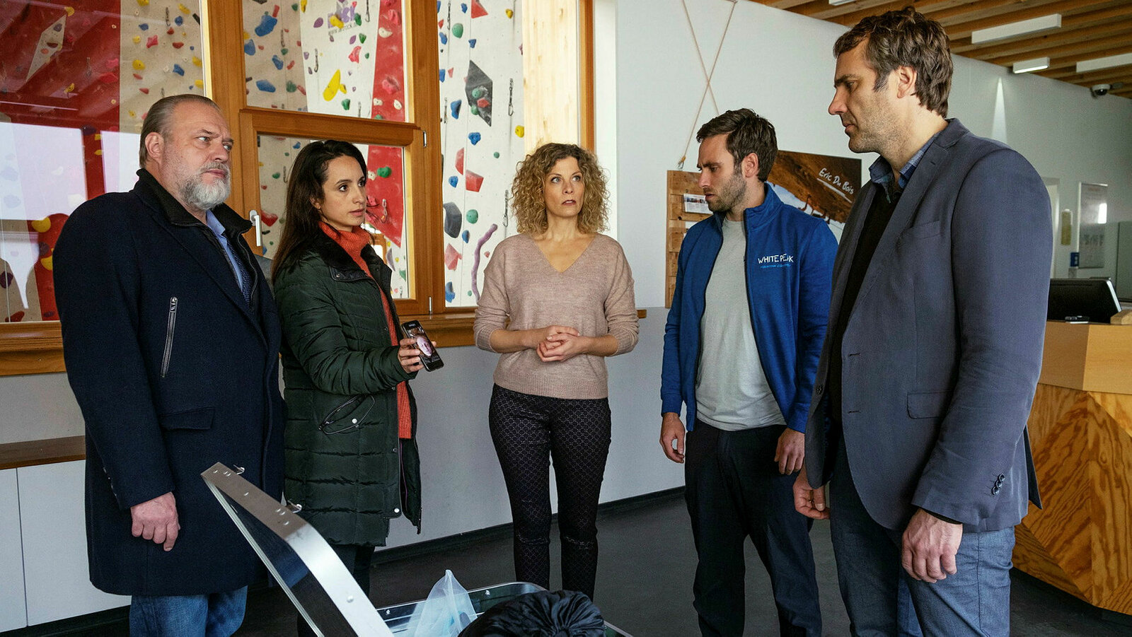 Freier FallDer Alte Freier Fall Jan-Gregor Kremp als Richard Voss, Stephanie Stumph als Annabell Lorenz, Anna Scha¨fer als Birgit Verlinden, Jonathan Mu¨ller als Eric Du Bois, Stefan Rudolf als Marco Verlinden SRF/ZDF/Erika HauriBild: © SRF1