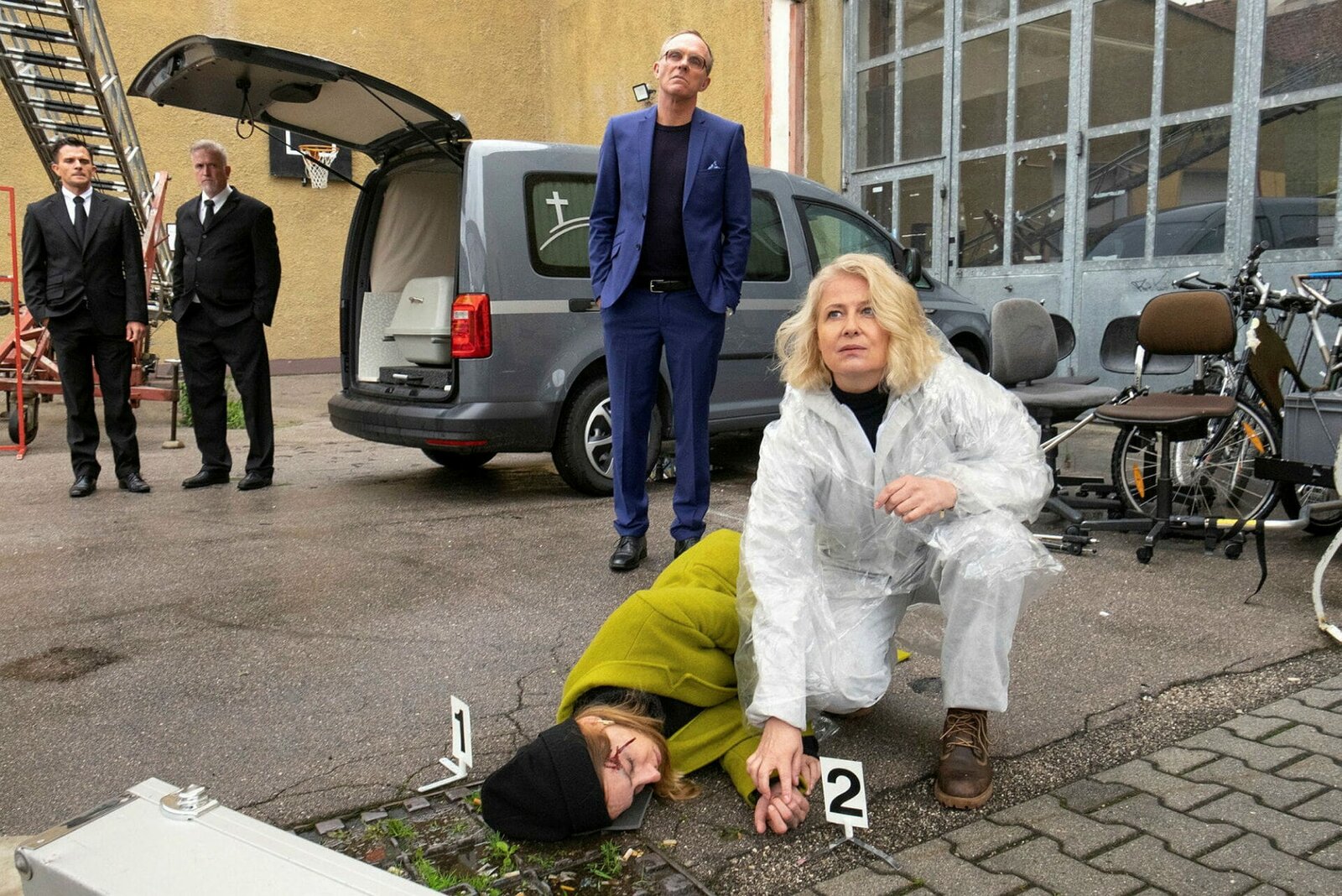 Bild des TodesDer Alte Bild des Todes Stephanie Stumph als Annabell Lorenz, Christina Rainer als Dr. Franziska Sommerfeld, Jan-Gregor Kremp als Richard Voss, Ludwig Blochberger als Tom Kupfer, Markus Ertelt als Stefan Egermann (liegend) SRF/ZDF/Erika HauriBild: © SRF1