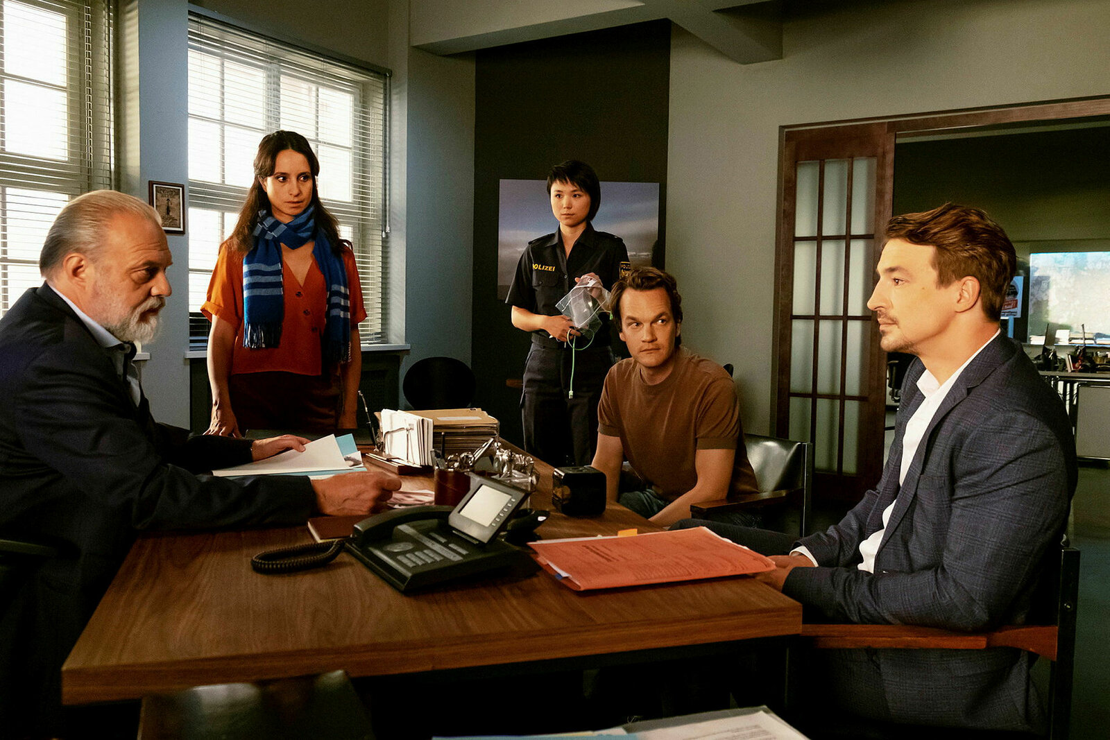 Zeugen der AnklageDer Alte Zeugen der Anklage Jan-Gregor Kremp als Richard Voss, Stephanie Stumph als Annabell Lorenz, Yun Huang als Julia Lulu Zhao, Ludwig Blochberger als Tom Kupfer, Sebastian Fischer als Staatsanwalt Alexander Spohr SRF/ZDF/Erika HauriBild: © SRF1