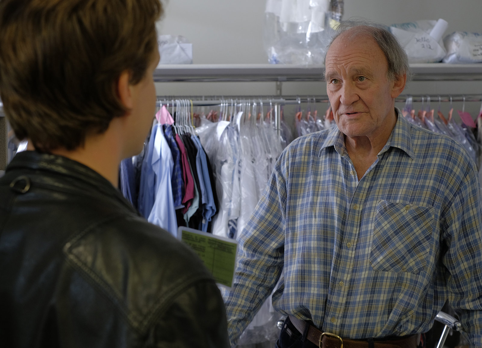 Therapie für ToteDer Vater erhält die traurige Nachricht: Ludwig Blochberger als Tom Kupfer, Michael Mendl als Fred GantnerBild: © SRF / ZDF/ Jacqueline Krause-Burberg