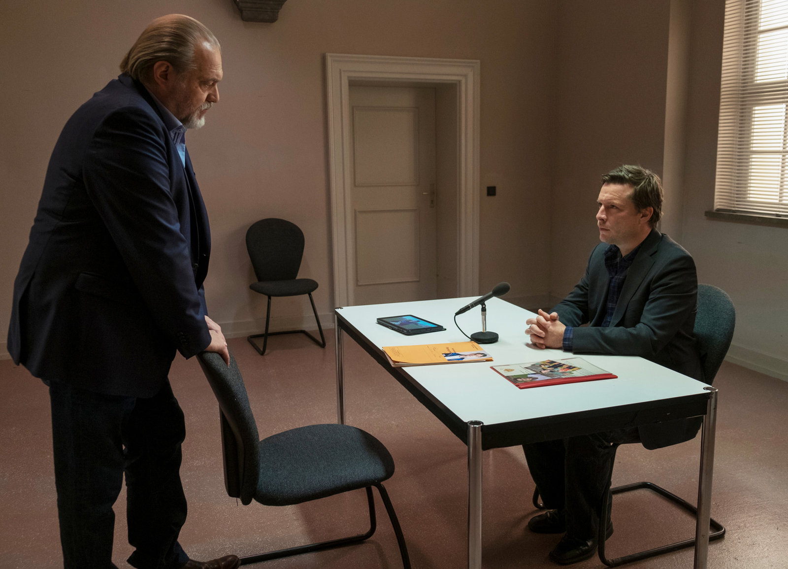 AufstiegskampfDas Verhör: Jan-Gregor Kremp als Richard Voss, Florian Panzner als Conny RotthoffBild: © SRF/ ZDF/Erika Hauri