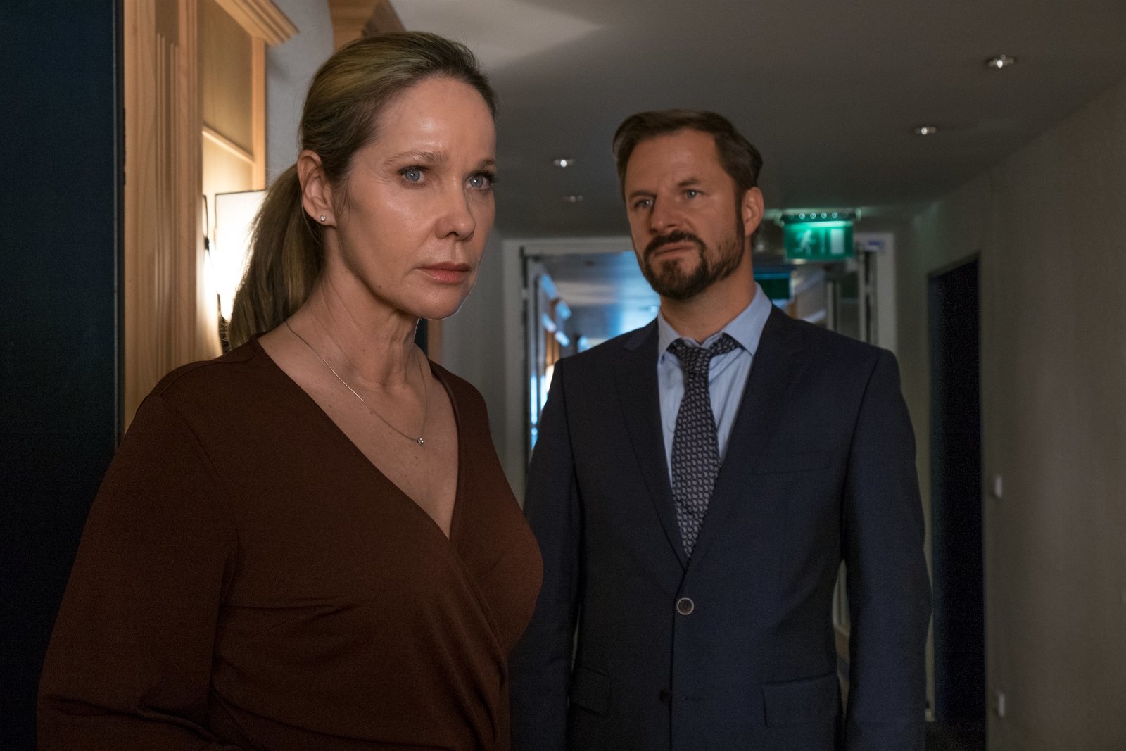 SündenfallHannah Lechner (Barbara Philipp, l.) lebt mit ihrem Mann in einer offenen Beziehung. Voss (Jan-Gregor Kremp, r.) will herausfinden, ob sie es wirklich so gelassen sieht, dass sie eine ernste Beziehung ihres Mannes mit seiner Chefin tolerierte.Bild: © ZDF und Jacqueline Krause-Burberg