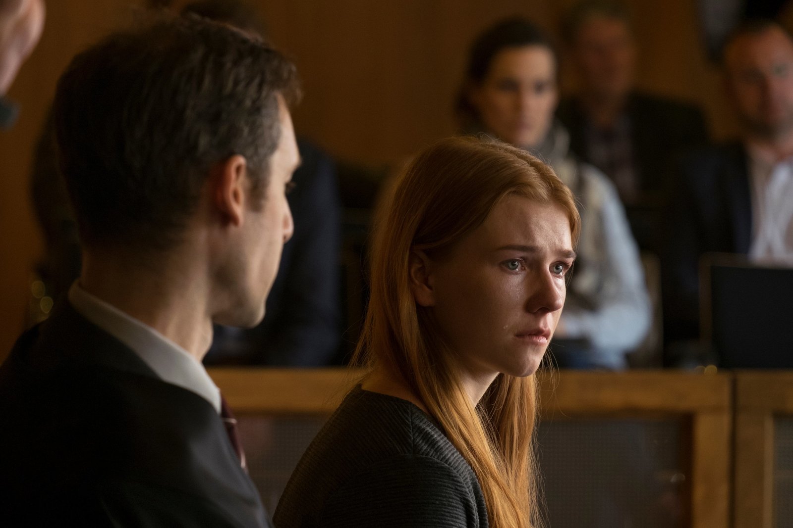 Schuld und SühneLaura Fischer (Franziska Brandmeier, r.) muss sich vor Gericht verantworten, ihr wird vorgeworfen ihr Kind zu Tode gesch¸ttelt zu haben. Ihr Anwalt (Markus Boniberger, l.) steht ihr zur Seite.Bild: © ZDF und Erika Hauri.