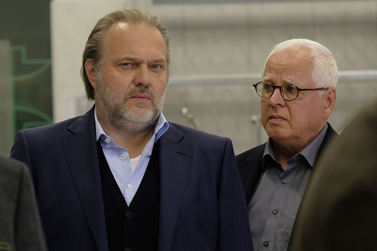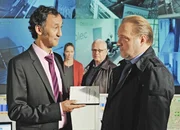 Therapie für ToteIst der Leiter des Forschungsinstituts Prof. Dr. Schmedtmann (Rainer Bock, r.) wirklich so unbescholten, wie er vorgibt? Kriminalhauptkommissar Richard Voss (Jan-Gregor Kremp, l.) geht dem nach.Bild: © ZDF und JACQUELINE KRAUSE-BURBERG