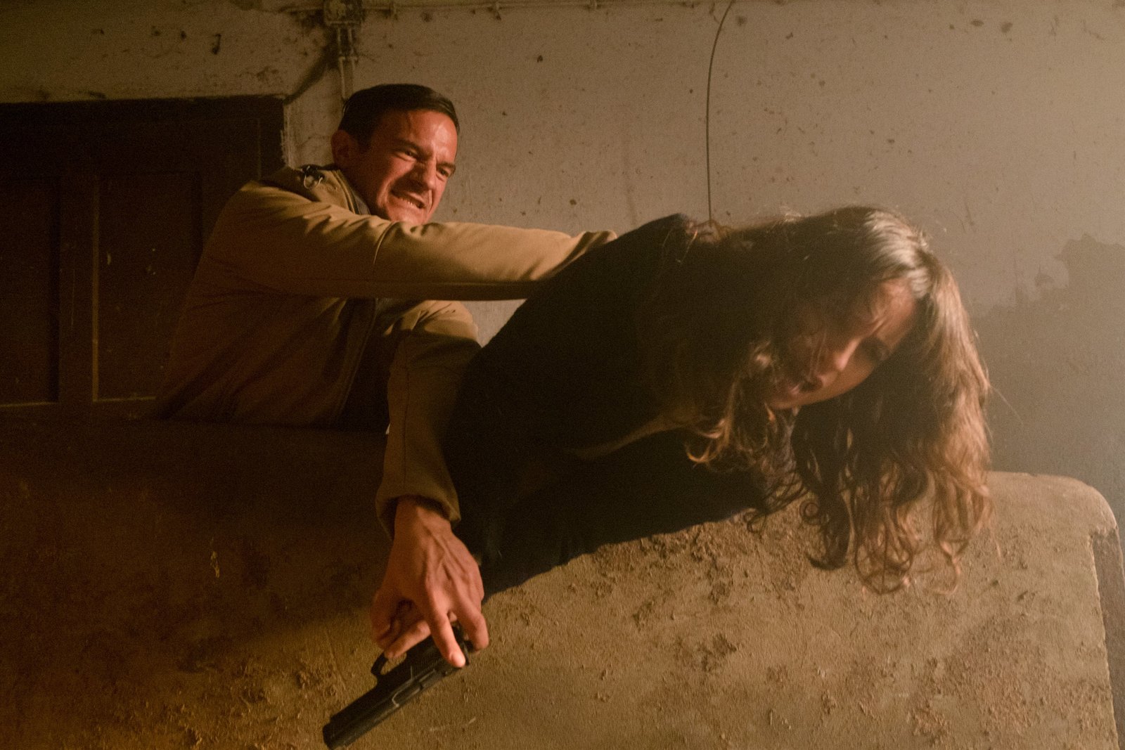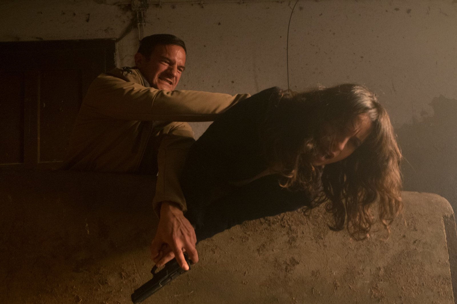 Das perfekte OpferAnnabell Lorenz (Stephanie Stumph, r.) wird auf der Suche nach der entführten Katja Schmidtbauer von Dennis Rickert (Sönke Möhring, l.) angegriffen.Bild: © ZDF und Erika Hauri.