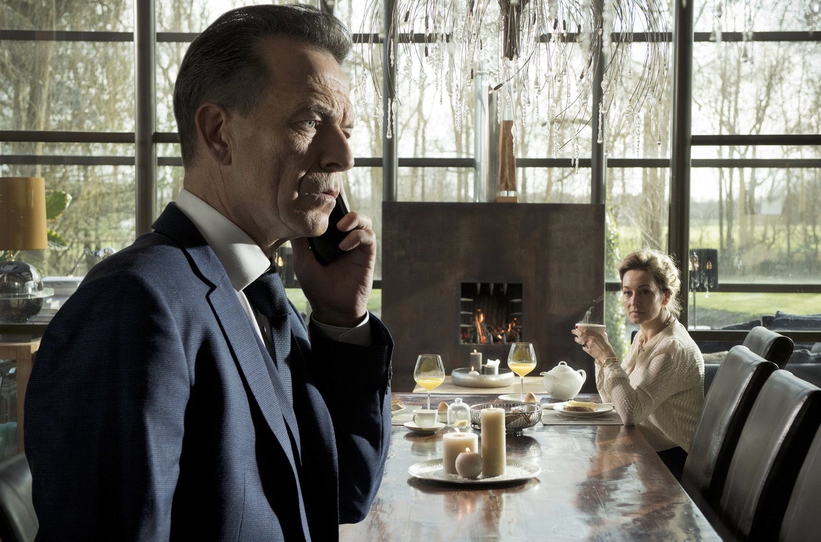 Auferstanden von den TotenDer Druck auf Mafiaboss Koning (Raymond Thiry) wächst. Seine Frau Christine (Cynthia Abma) sieht, wie ernst die Lage ist.Bild: © ARD Degeto/Martin Valentin Menke