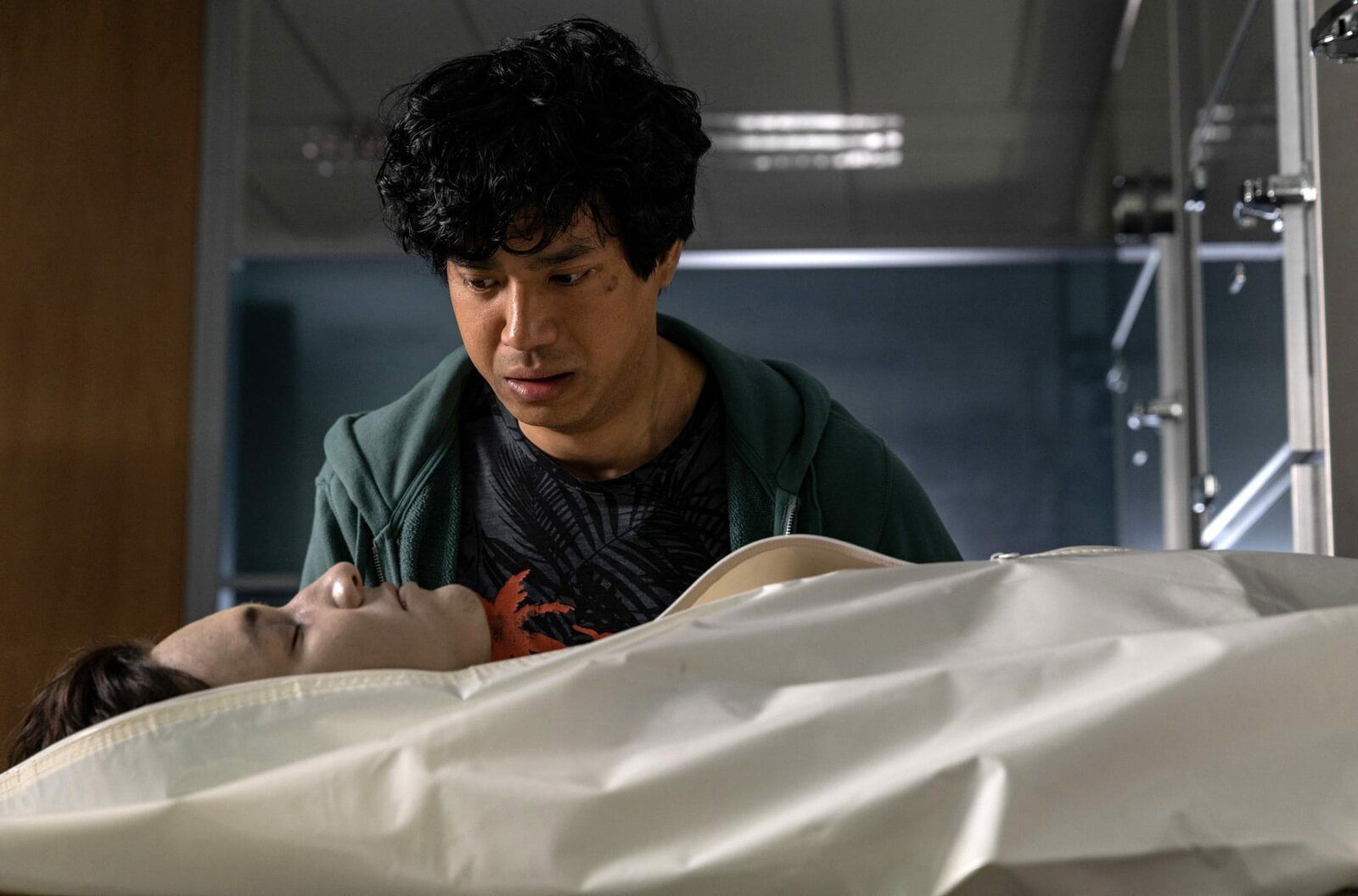 Der Tote aus dem EisJoyo (Vietha Luong, hinten) mit der Leiche seines Freundes.Bild: © ARD Degeto/Raymond van der Bas