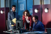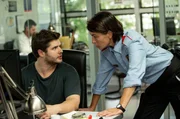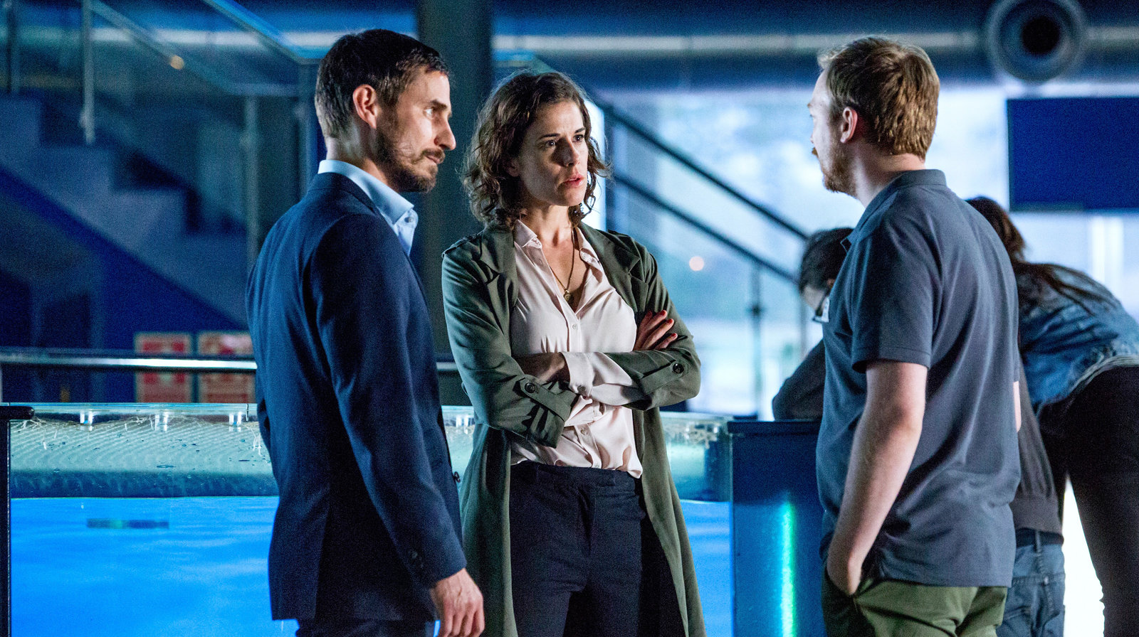 Tod aus der Tiefe"Der Barcelona-Krimi: Tod aus der Tiefe", Im Küstengewässer vor Barcelona treibt ein Toter. Persönliche Geheimnisse werden ans Licht gezerrt und Altlasten drohen zum Fallbeil zu werden. Bei ihren Ermittlungen stechen die Kommissare Xavi Bonet (Clemens Schick) und Fina Valent (Anne Schäfer) in ein Wespennest. Der junge Geologe Tomás stirbt bei einem Tauchgang. Durch die unnatürlich große Dosis Quallengift in seinem Körper wird der Unfall schnell als Mord enttarnt. Tomás' Freundin Catalina, die bei ihm war, ist seither spurlos verschwunden. Wie die Kommissare Xavi Bonet und Fina Valent alsbald herausfinden, hat Tomás Belege für einen riesigen Umweltskandal gesammelt und sich dadurch wohl mächtige Feinde gemacht. Auch Xavis Vater, frisch gewählter Bürgermeister Barcelonas, ist offenbar in den Fall verwickelt. Im Bild: Eduardo (Tino Mewes) verheimlicht Xavi (Clemens Schick, l.) und Fina (Anne Schäfer) etwas.Bild: © Degeto/Dreamtool Entertainment/L / ORF / Betafilm