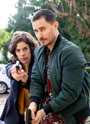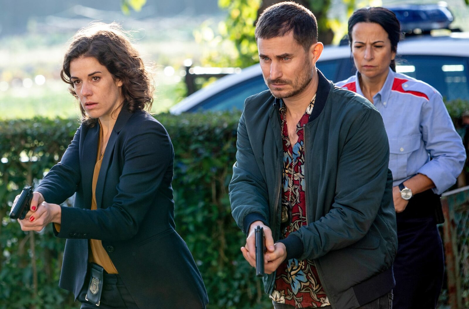 Entführte MädchenDie Polizisten Alma Gomez (Jule Gartzke) und Enzo Alvarez (Sebastian Fritz) unterstützen das Ermittlerduo Xavi und Fina.Bild: © ARD Degeto/Lucia Faraig