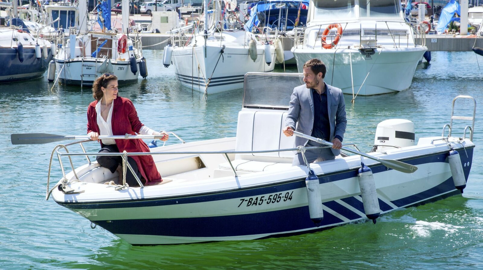 Tod aus der TiefeXavi (Clemens Schick) und Fina (Anne Schäfer) durchsuchen das Boot des getöteten Tauchers.Bild: © Degeto/Dreamtool Entertainment/L / ORF / Betafilm