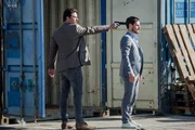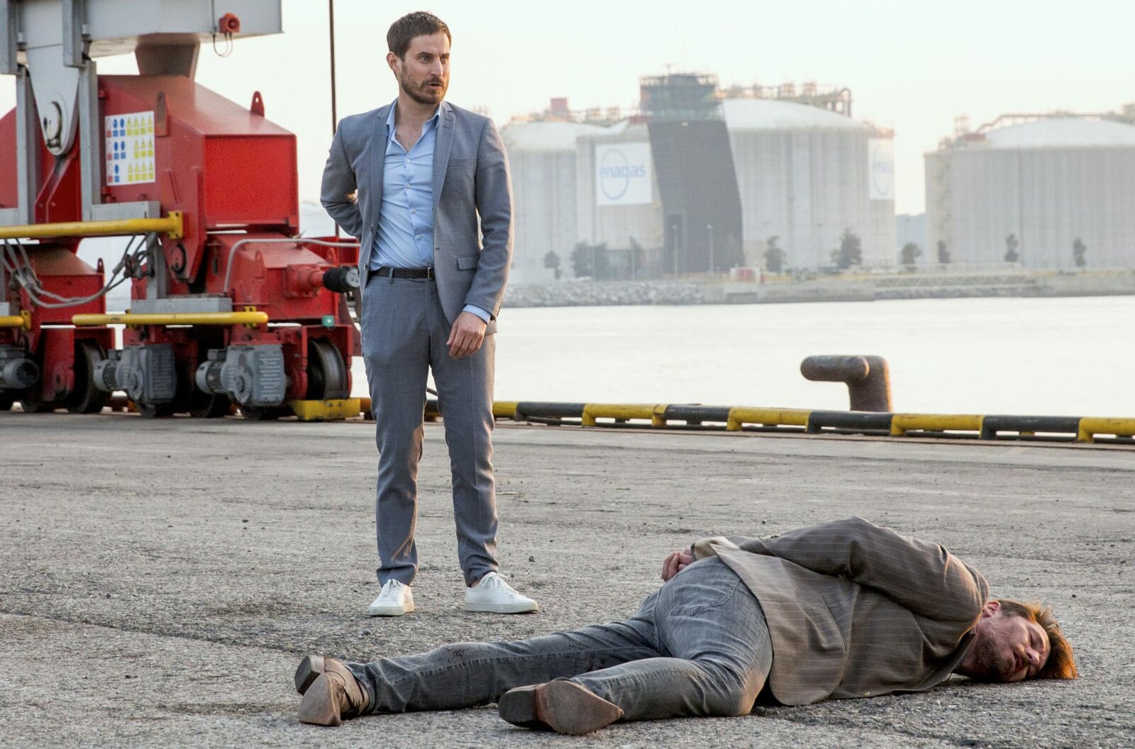 Über Wasser haltenShowdown im Hafen: Xavi Bonet (Clemens Schick, li.) schnappt sich den Gangster Gerard (Luka Peros).Bild: © rbb/ARD Degeto/Lucia Faraig